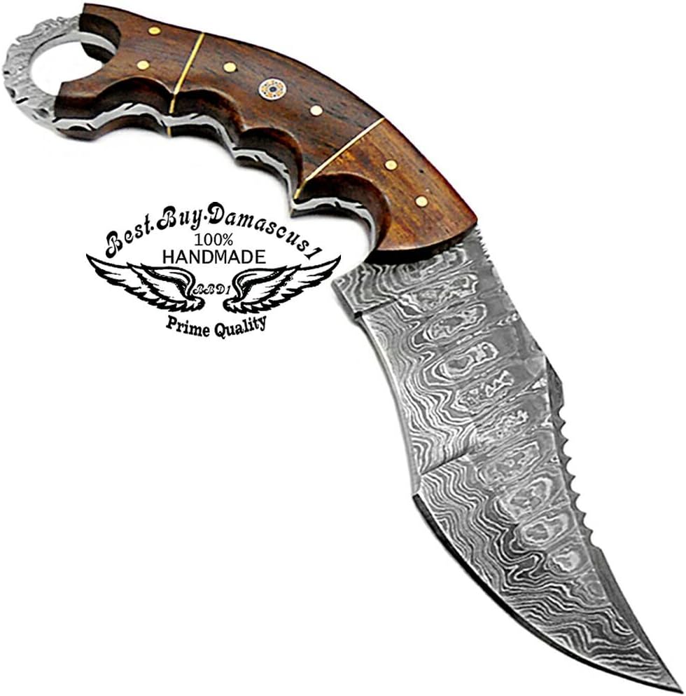 Amazon Com Rose Wood 9 5 Fixed Blade Custom Hand Made Damascus