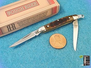 Folding Pocket Knife Rough Rider Rr183 Mini Muskrat Amber Jigged