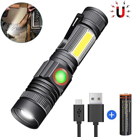 Magnetic Led Flashlight Usb Rechargeable 18650 Battery Included