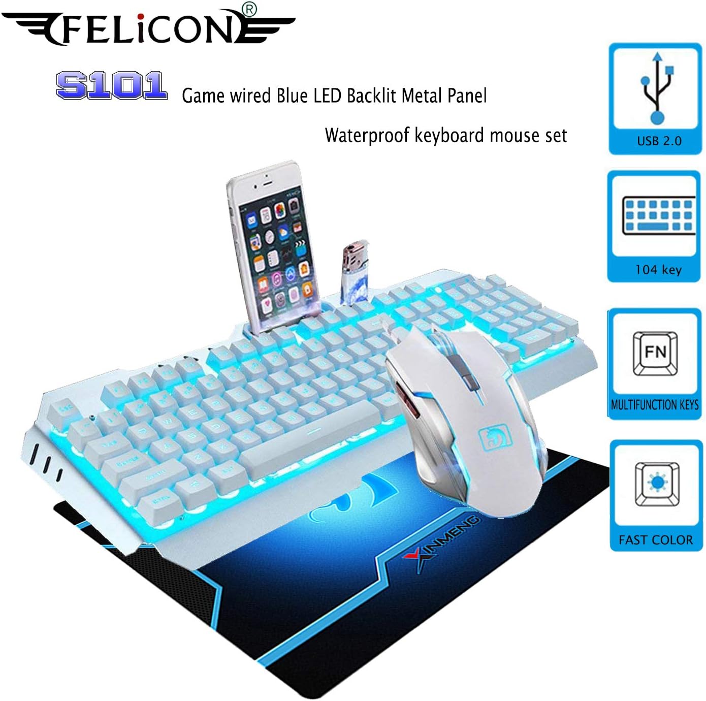 Amazon Com Felicon Gaming Keyboard Mouse Combo Sets S 101 104
