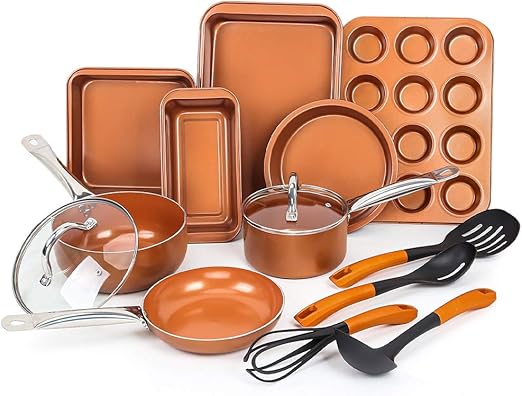 Amazon Com Copper Nonstick 10 Piece Cookware Set Multi Purpose