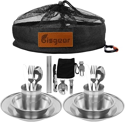 Amazon Com Bisgear 20pcs Stainless Steel Tableware Mess Kit