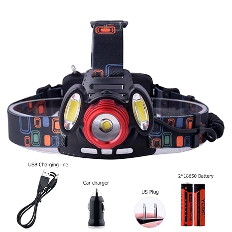 Amazon Com Ycdc 18650 Headlight 2cob 1cree T6 Headlamp 1000lm