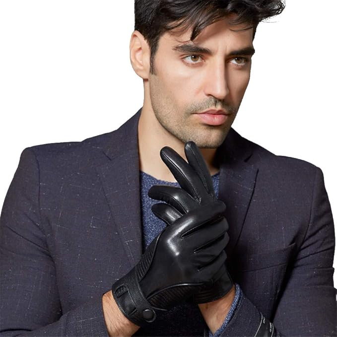 Fioretto Winter Gloves Men Warm Driving Leather Gloves Motorcycle