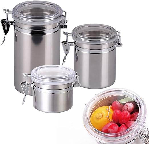 Amazon Com Stainless Steel Window Canister Set With Air Tight