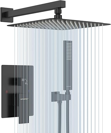 Emabather Black Shower System 12 Inch Mount Shower Faucet Set With