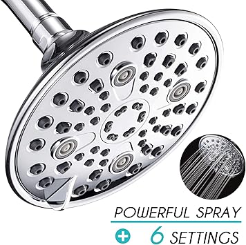 Anza Rain Shower Head High Pressure 6 Spray Settings Water