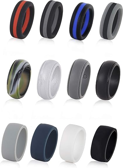 Tornito 12 Packs Silicone Band Wedding Ring Step Edge Sleek Middle