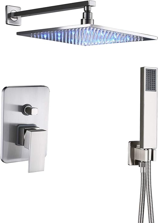 Rozin Brushed Nickel 2 Way Mixer Shower Set Led Light 12 Inch