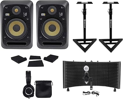 Amazon Com 2 Krk V6s4 Na 6 Powered Studio Monitors Stands Pads