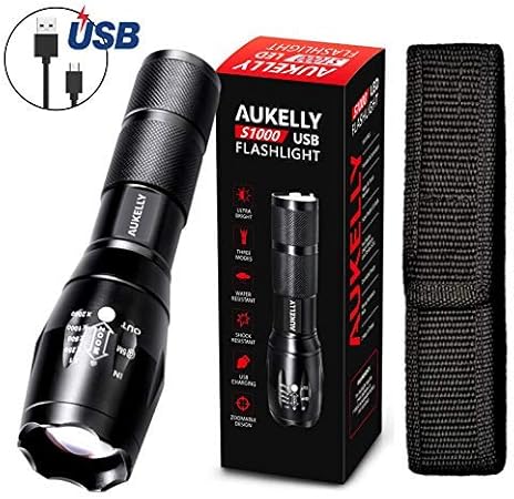 Aukelly Led Flashlight Rechargeable Flashlights High Lumens Usb