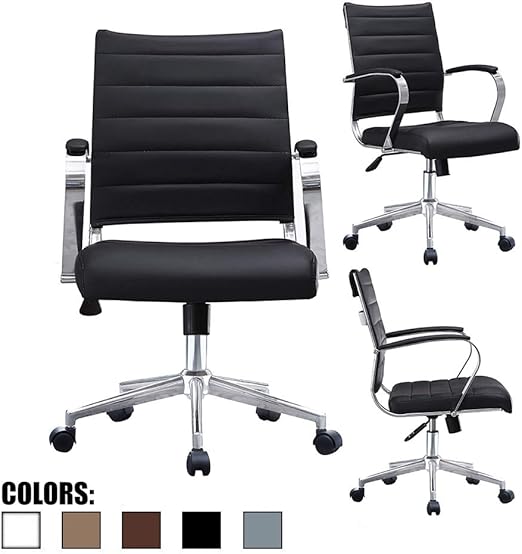 Amazon Com 2xhome Black Modern Mid Back Ribbed Pu Leather