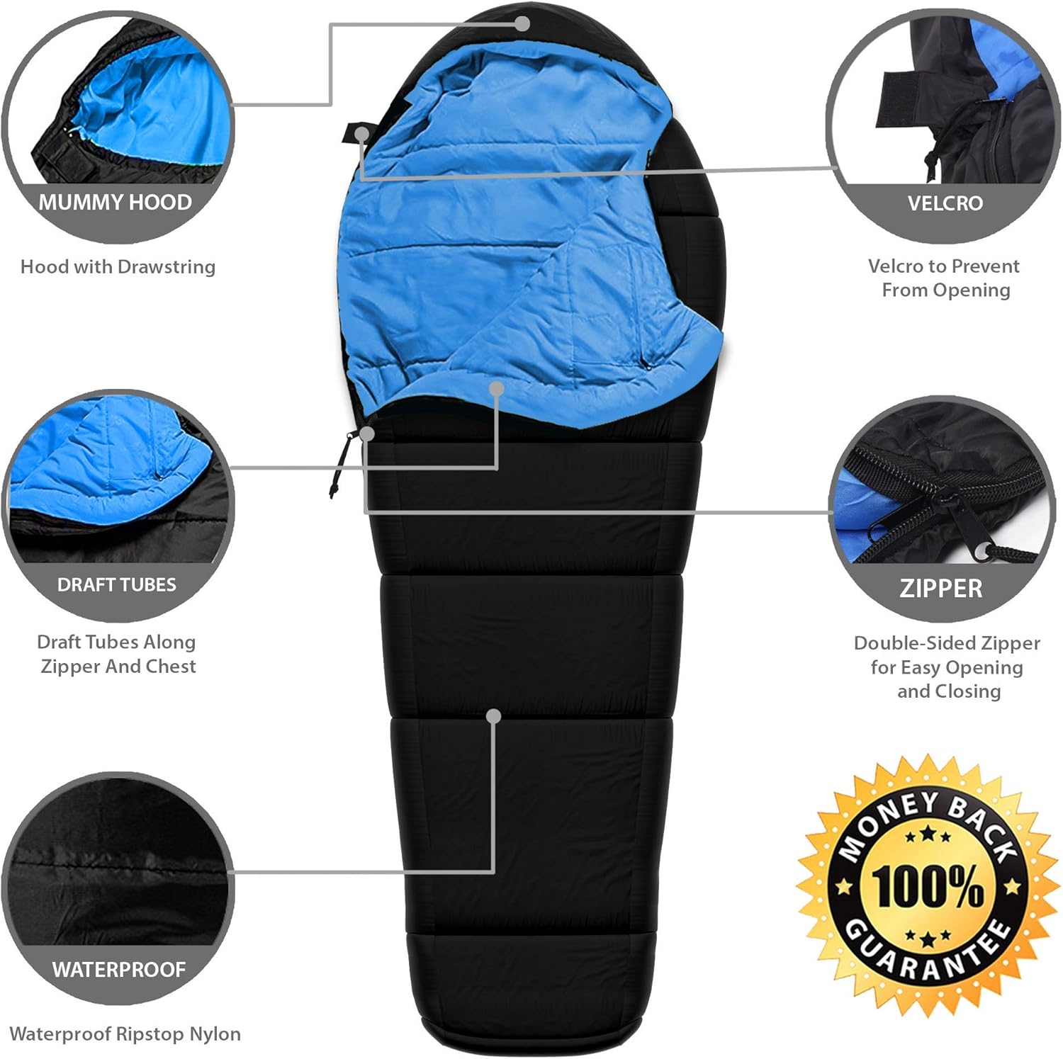 Amazon Com Sleeping Bag Mummy Style Waterproof Portable
